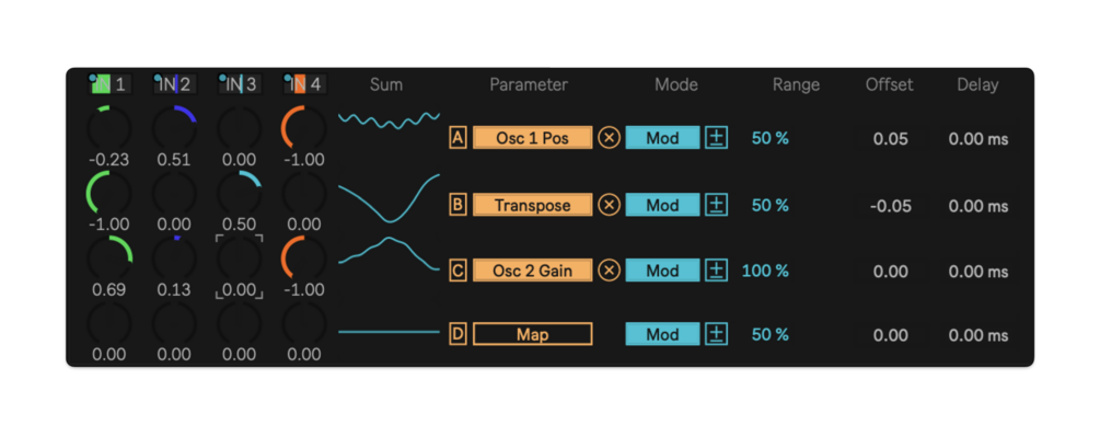 QUAMOMI is a Maxforlive device offering factoring and summing for up to four modulation sources within Ableton Live 12.